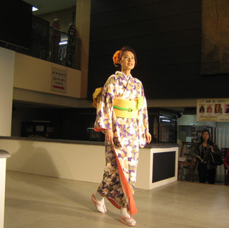 In Osaka we watched a kimono fashion parade followed by a photo opportunity with a 'trainee' geisha. As tradition goes, single girls wore a sash with a rounded protruding bustle at the back. Married girls wore a flat one. The reason behind this, apparently, was so that fathers could tell if their daughters had been on their backs during their evening out on the town. It is supposedly extremely difficult to take a kimono off and put it back on again by oneself. So, once on, it was usually on for the duration.